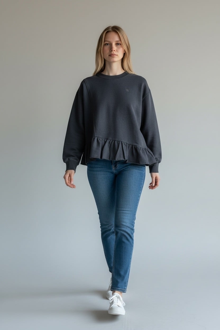 H.A.K|フリルで魅せる大人スウェット (アシンメトリーなフリルがカジュアルを上品に)