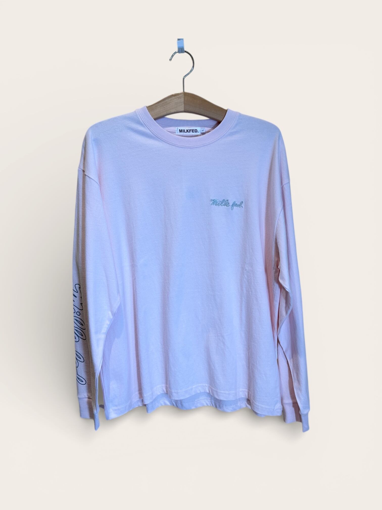 MILKFED.で人気のアイシングロゴを施した長袖Tシャツ。