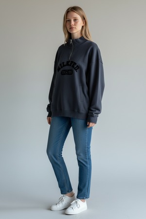[SALE] MILKFED.|カレッジロゴのハーフジップ<Lサイズ> (ほどよいヴィンテージ感)