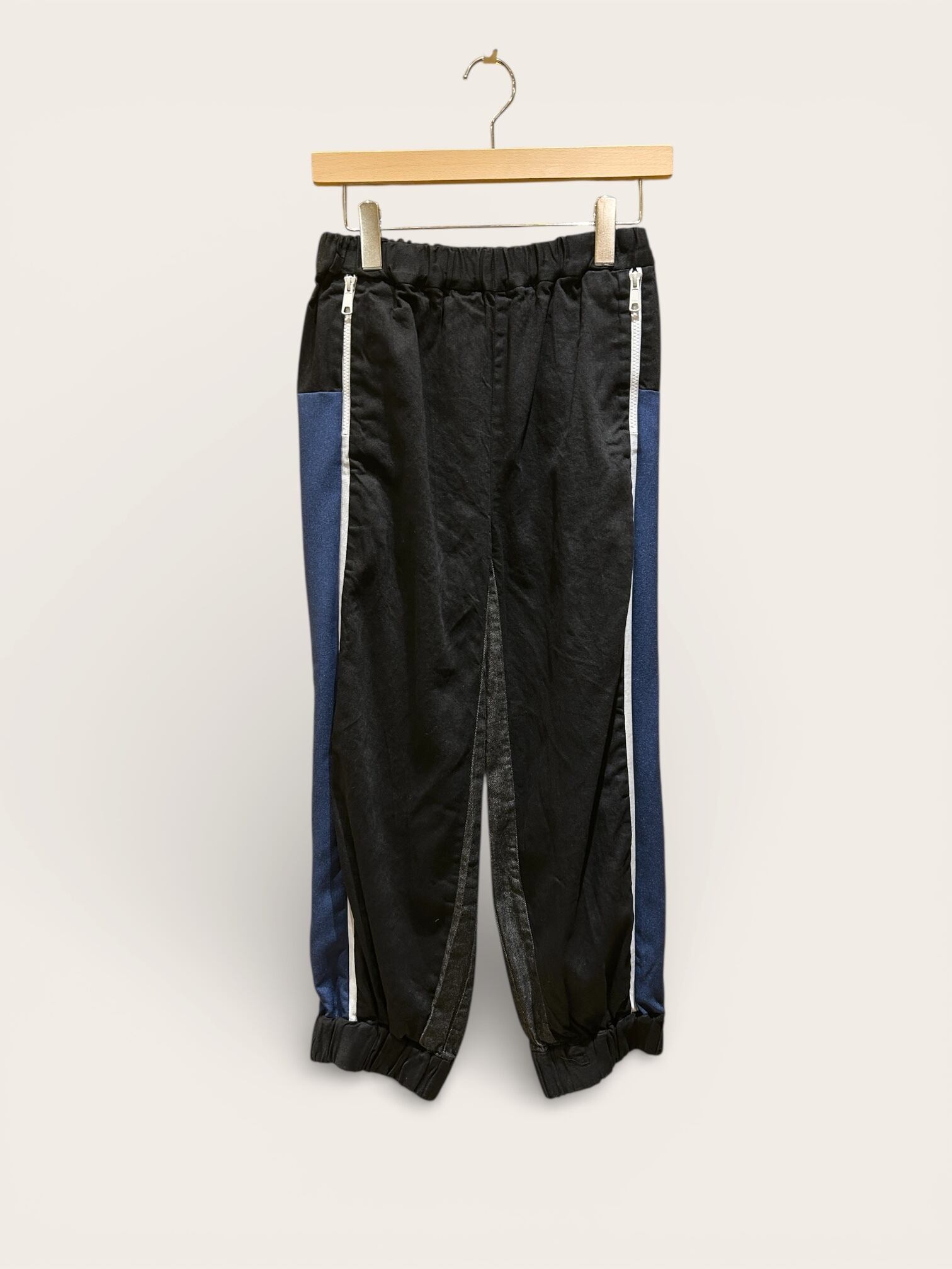 ファスナー付きのポケットや、裾ゴム仕様で、全体がすっきりとまとまるデザインです。