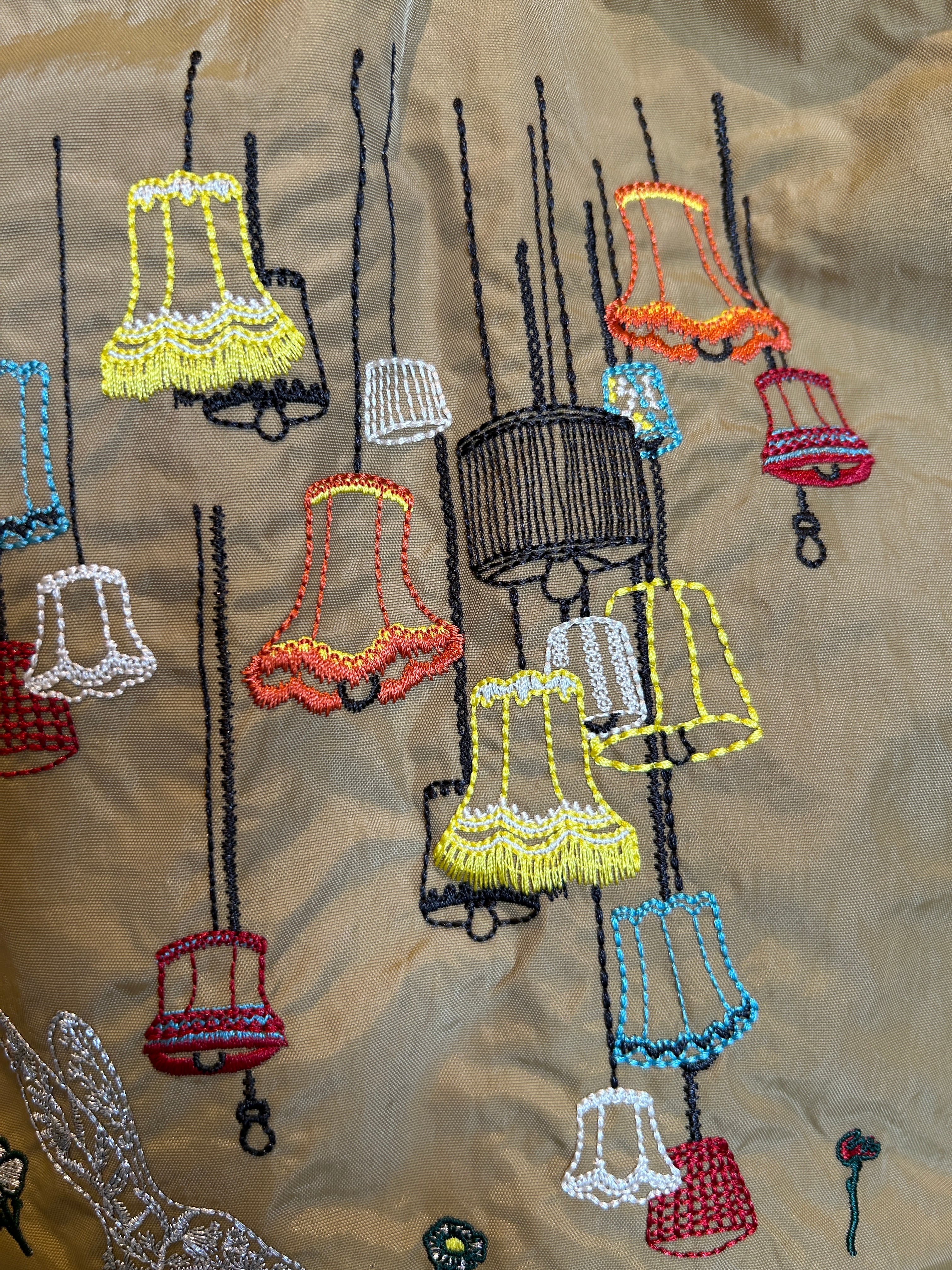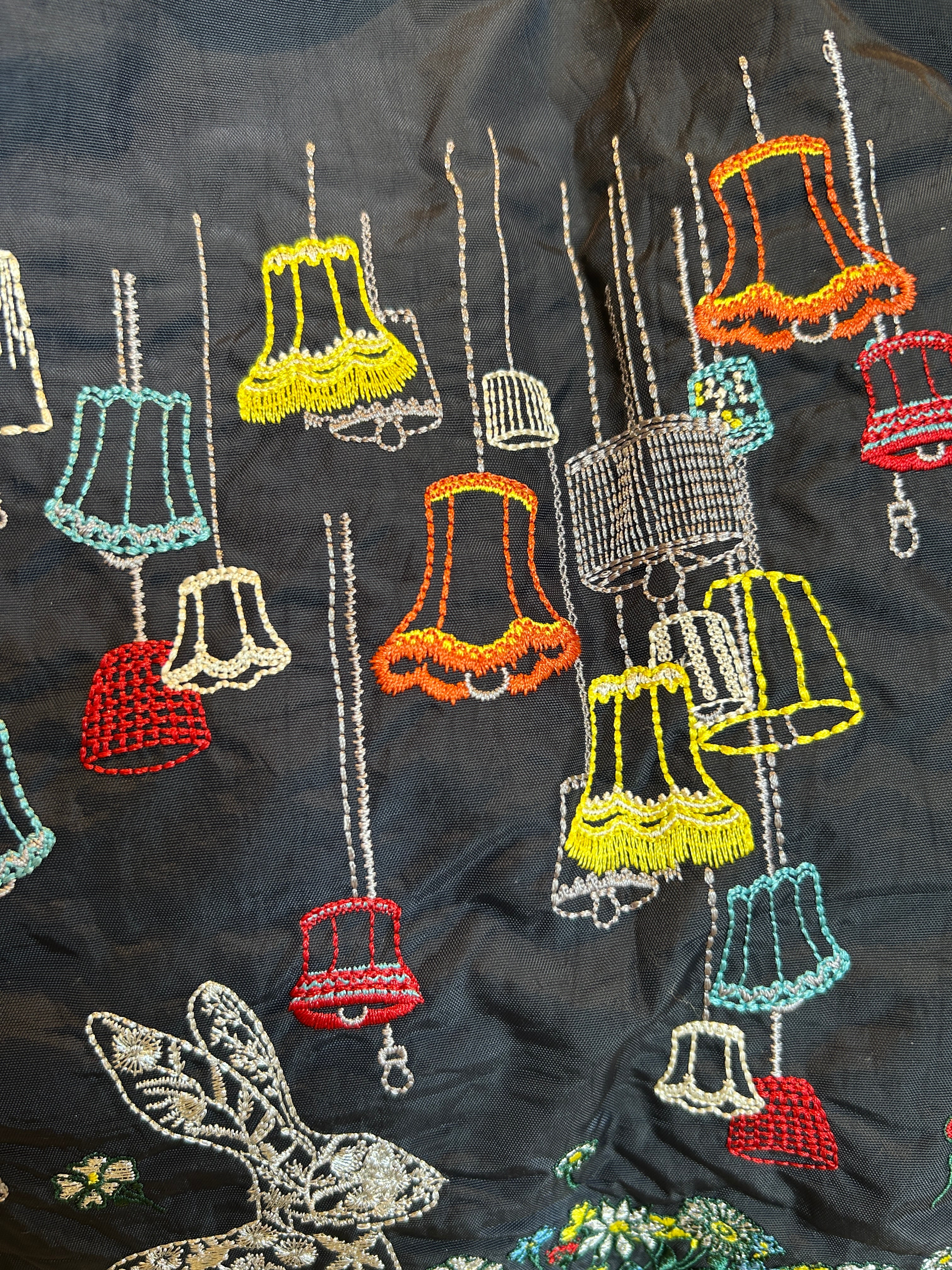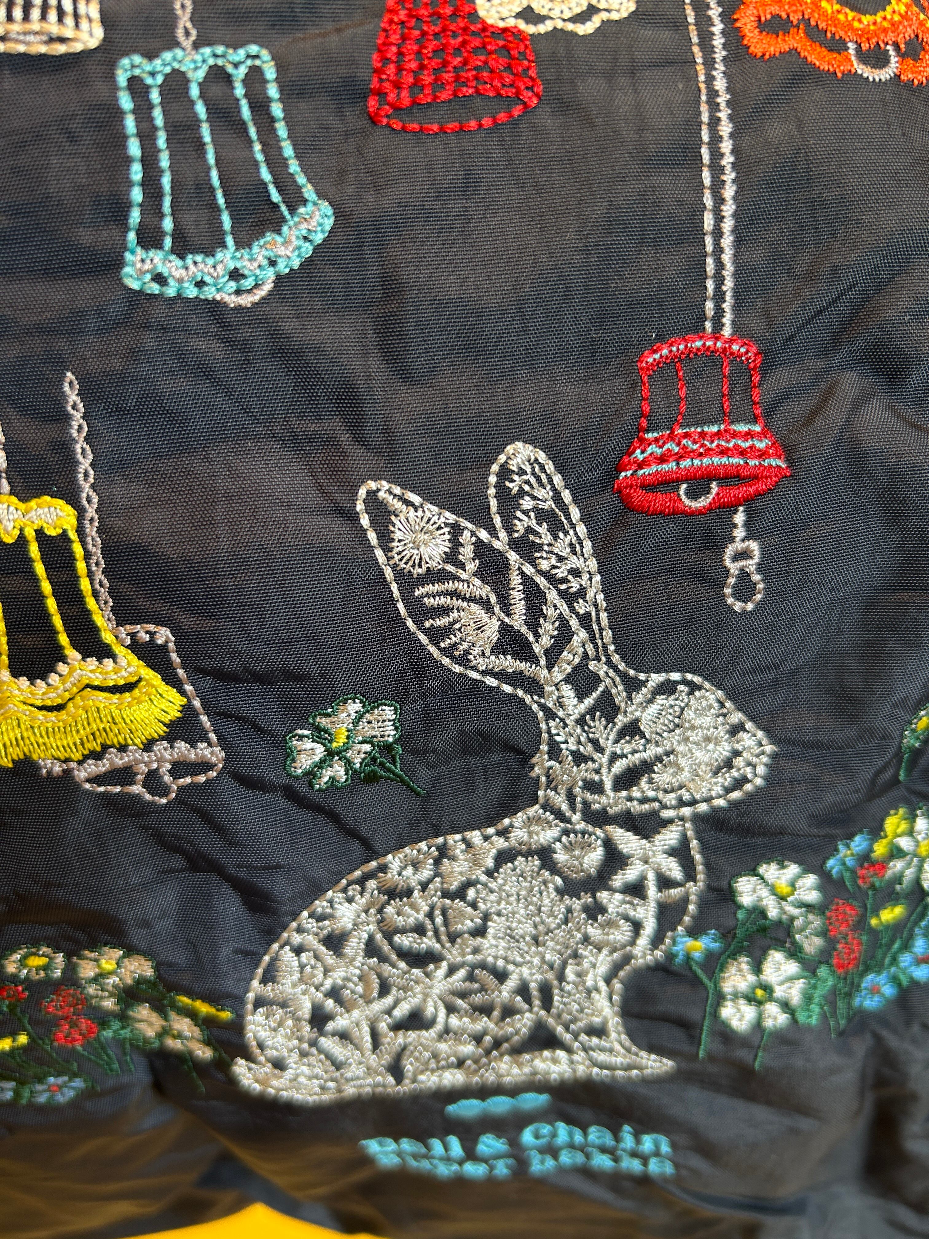 ウサギ×ランプ×お花畑 の刺繍トートです。