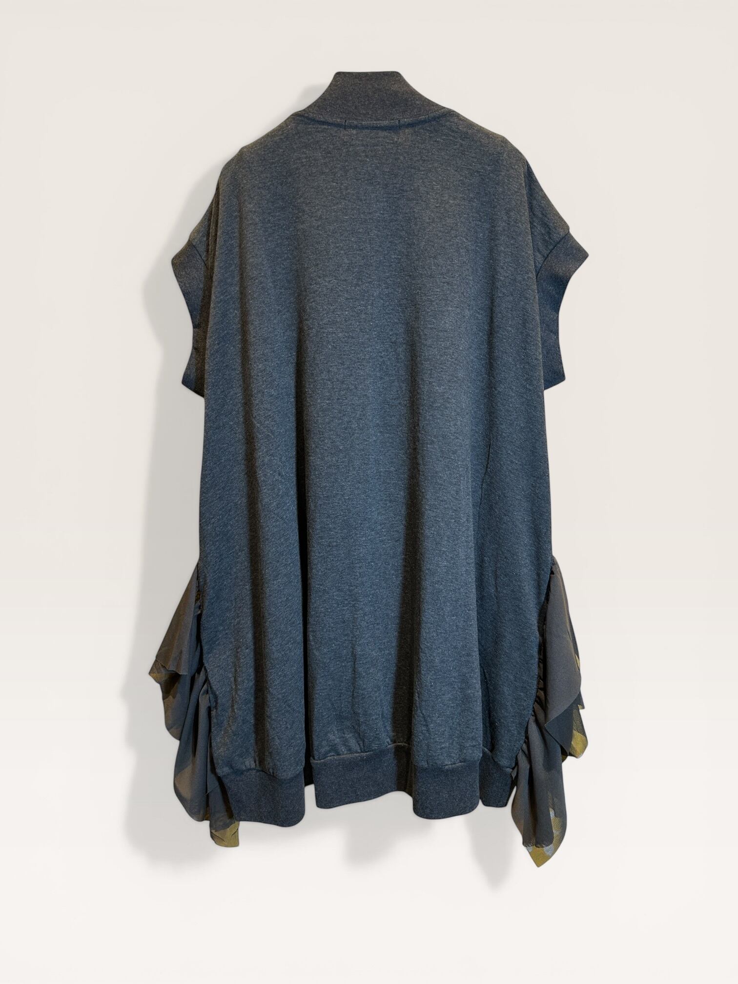 カット素材のロングベスト。